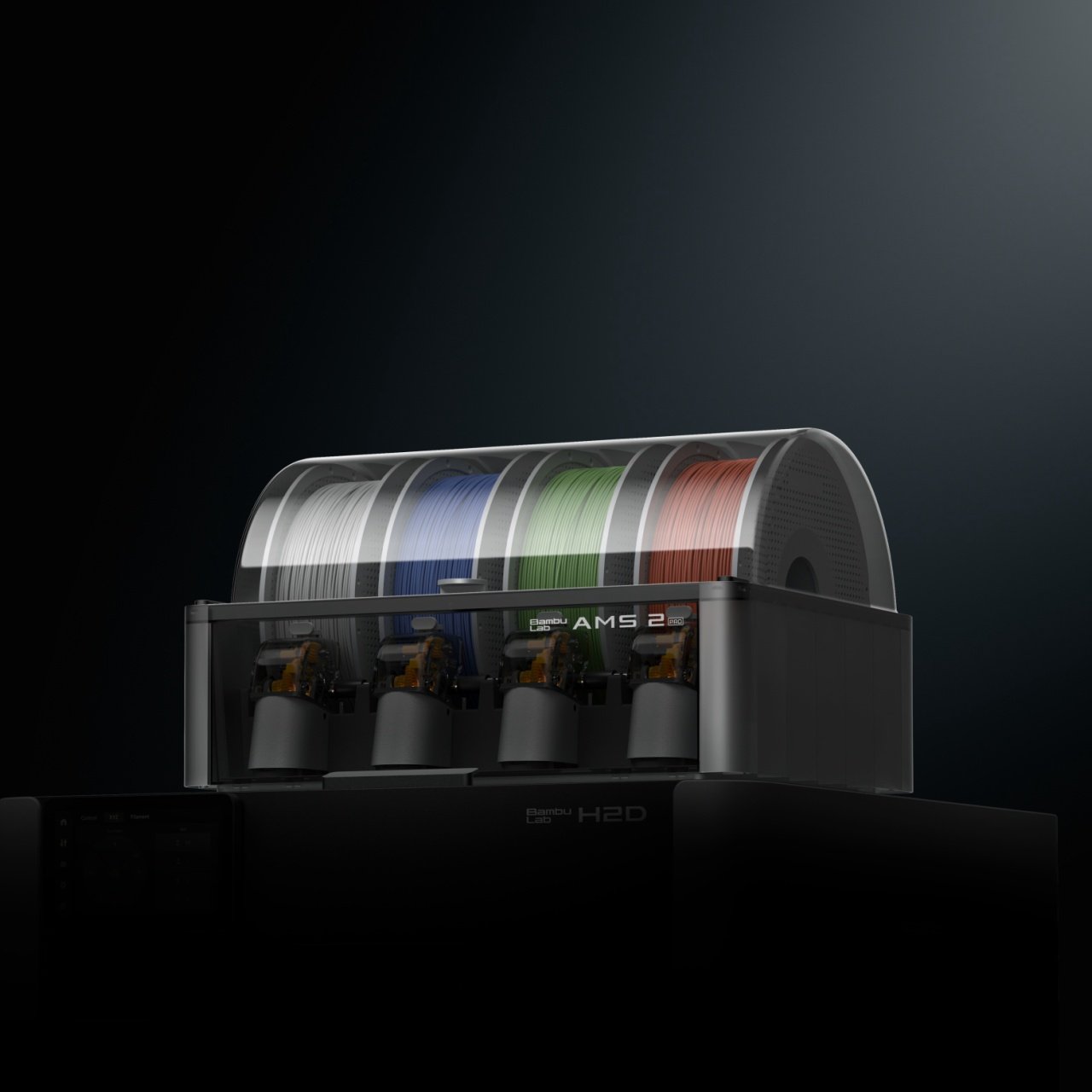 Sistemele AMS 2 Pro si AMS HT de noua generatie aduc motoare servo brushless pentru alimentarea mai rapida a filamentului, functie de uscare integrata cu clapeta electromagnetica si sincronizare RFID pentru setarile materialelor Bambu. Astfel ai multi material si multi culoare la viteze ridicate si cu management corect al umiditatii.