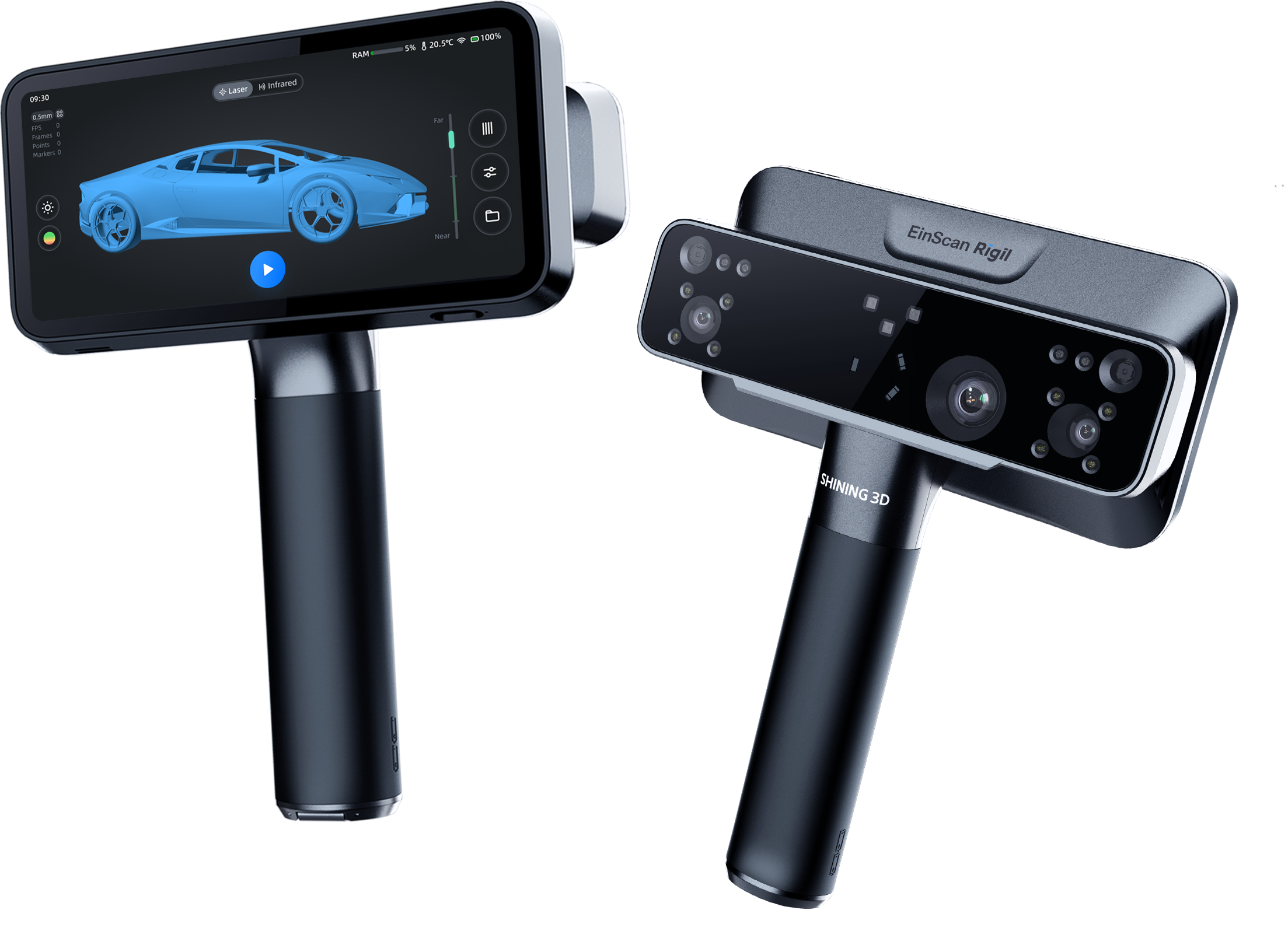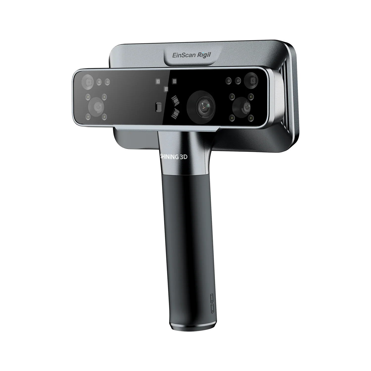 EinScan Rigil este un scanner 3D cu laser profesional cu trei moduri de lucru, proiectat pentru aplicatii de inginerie, reverse engineering, control dimensional si design. Combinatia dintre sursa de lumina hibrida laser albastru si VCSEL infrarosu, modul de lucru complet wireless si algoritmii de urmarire fara markeri ofera un flux rapid, curat si foarte flexibil, de la ateliere de productie pana la scanari in aer liber.