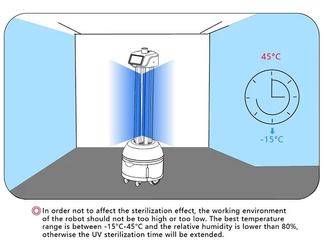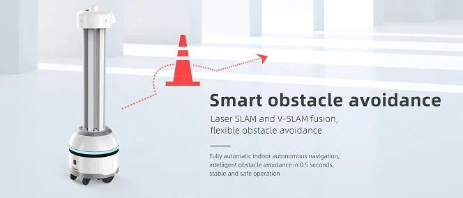 Robotul medical de sterilizare cu ultraviolete UV-C autonom Reeman, cu o putere de 180W, are caracteristici de: sterilizare rapidă, eficiență ridicată, acoperire extinsă, acțiune temeinică și fără poluare secundară. Robotul de dezinfectare înlocuiește forța de muncă în perioade speciale pentru a reduce riscul de infecții încrucișate. Șasiul rotund are o capacitate mai bună de trecere și este potrivit pentru medii complexe.