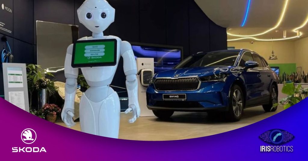 Pepper a întâmpinat vizitatorii în zona E-Mobility Lounge prin mesaje personalizate, reprezentative pentru brand și a aplicat un chestionar de tip quizz în rândul celor interesați de automobil, pentru a-și exprima părerea despre noul model ENYAQ iV.